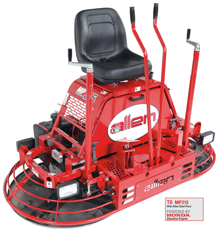 This MP215 rider is loaded with features found on our larger riders and the renowned durability of all Allen equipment. It is equipped with a reliable Honda air-cooled gasoline engine, a heavy-duty drive-train on an easy-to-service frame. This versatile rider can be used for slab on grade, paving, and other projects.