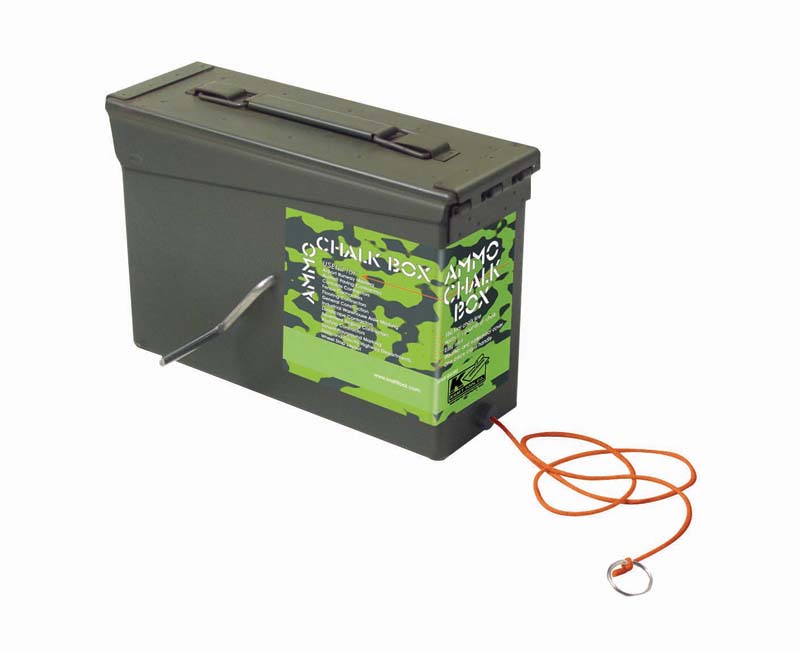 The Ammo Chalk Line Box can hold 1.5 pounds of chalk and comes with an easy-to-use heavy duty 150-foot chalk line.