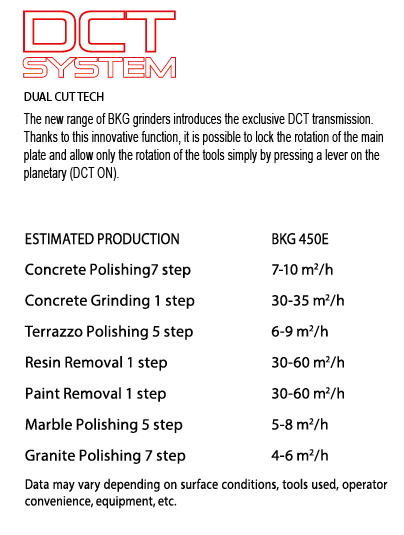 The DCT system allows you to choose to smooth use only using the rotation of the tools (DCT ON mode), or with the classic complete rotation of the planetary (DCT OFF mode).