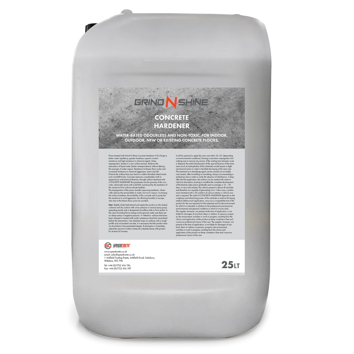 This Grind N Shine formula, with an enhanced lithium concentration, rises from the need of supplying the substrate with quick protection while the silicate is curing, mitigating the risk of penetration and soiling by oily substances, coloured or chemically aggressive aqueous solutions. Applied on new or existing concrete, it penetrates the porosities and capillaries, chemically reacts