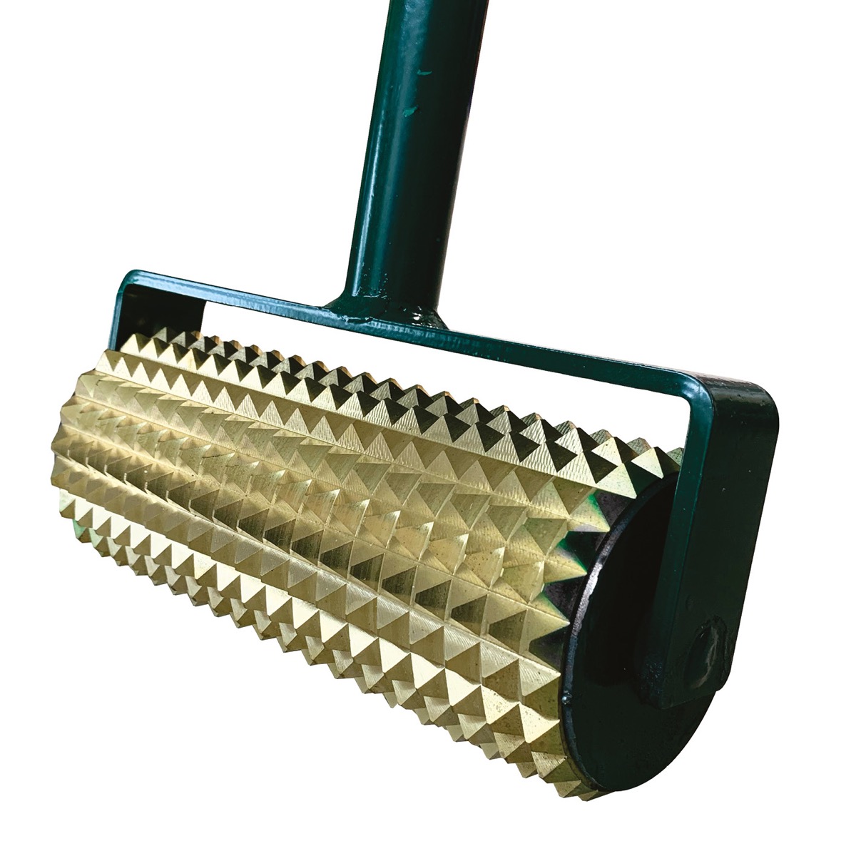 High quality brass indent roller used for applying non-slip surface to concrete slab. Often referred as a spiked roller, the indent roller will leave a durable non slip surface of indented pyramids which will not scrub out.