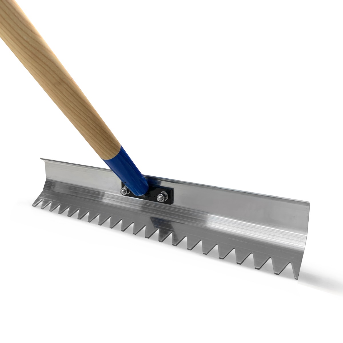 This heavy duty concrete rake featuring a toothed designed head made from heavy-duty aluminium. The 60" handle has a steel adaptor.