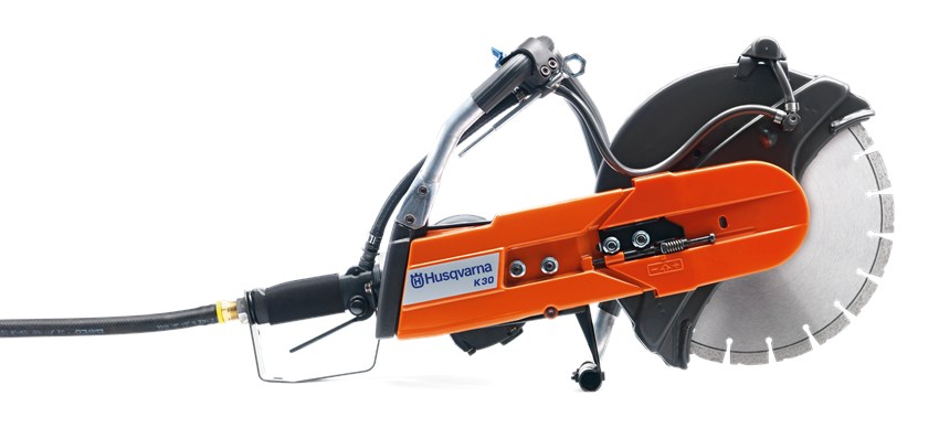 The K30 from Husqvarna handles up to a standard 350mm [14"] diamond blade or abrasive blade. It features a reversible cutting arm that allows close cutting to walls and other obstacles from either side of the machine. The K30 air cutter saw also features DEXâ„¢. A unique water saving wet cutting kit that keeps dust to a minimum