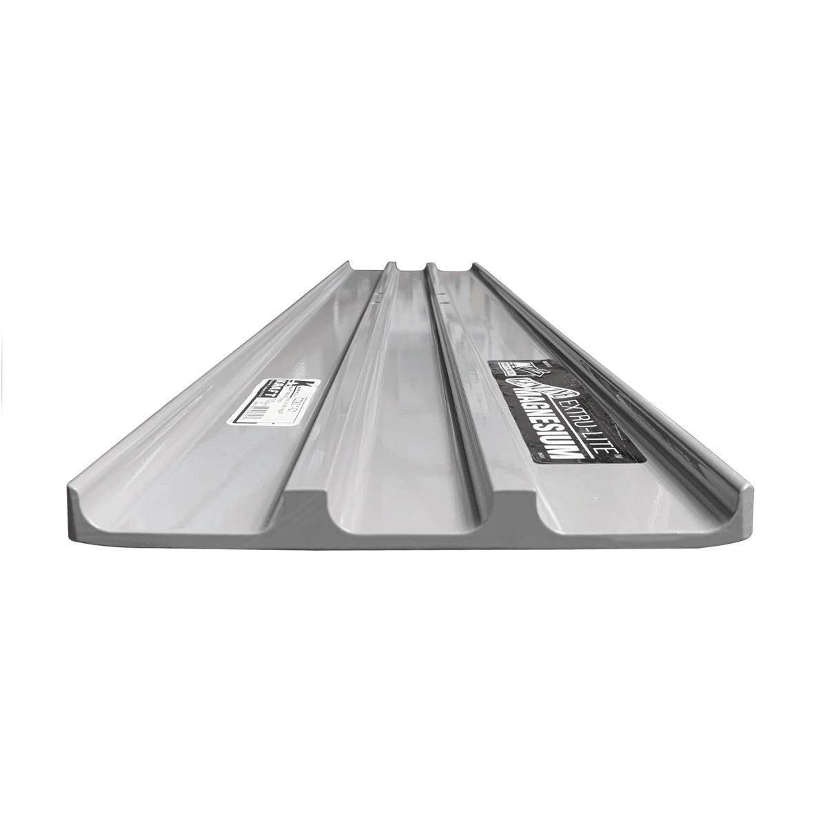 The float opens the surface to release the bleed water as it embeds the aggregate. Lightweight Genuine Extru-Lite™ Magnesium is 30% lighter than aluminium. This 3-1/2' bull float features multiple ribs providing reinforced strength for long wear and flatness.