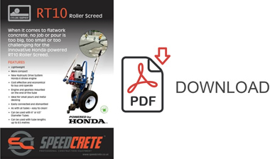 Speedcrete bring you a revolutionary new hydraulically driven RT10 roller screed. Designed for the jobs up to 8.5 metres wide the rotoscreed is hydraulically driven, more power, no hoses, smooth and efficient power delivery to flatten concrete fast with minimal effort and clean up time.