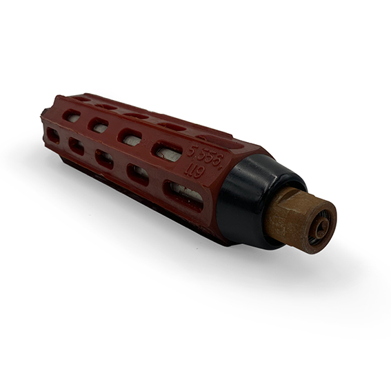 Special care is needed when consolidating concrete which is reinforced using resin coated rebar. This rubber headed vibratory head connection ensures that the resin which coats the rebar cannot be chipped as could be the case with a vibratory head which is metal.