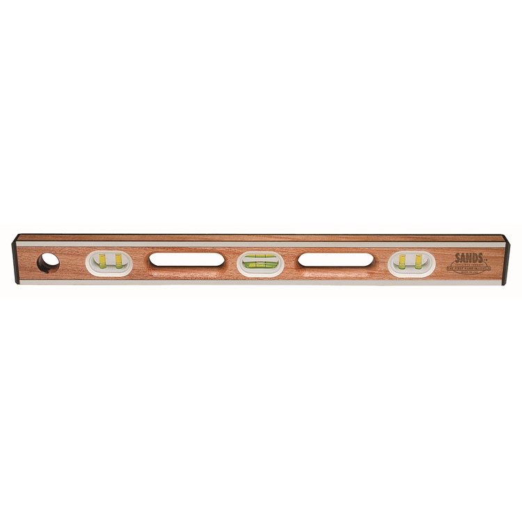 The finest selection of mahogany wood provides the foundation for this 48 in. level, a favorite with masons. Angle bound stainless binding is embedded in the wood for extra strength and straightness. The wood has a beautiful smooth finish. Six Cat's Eye Yellow double bent vials are solid set for accuracy. Double bent vials make leveling easier. The vials feature permanent lines that won't fade or wear away. The level is guaranteed accurate to .0004 in. per inch. The vials are protected by glass lenses to extend the life of the level. Shock absorbing rubber end caps are secured to the end of the level to stand up to wear and tear on the tool. Two large hand holes provide comfort and ease when moving the level.