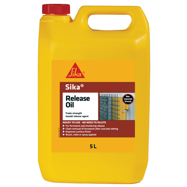 5 litre Release Oil. A ready to use formwork release agent suitable for mould and shutter faces prior to casting concrete in order to achieve a clean release after removal of formwork. The resultant concrete has a smooth uniform finish with reduced incidence of blow holes.