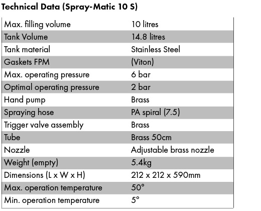 This Birchmeier product has some great features including: Security valve, Separate, large filling opening, Hose coupling fixed on container head, Closing cap, Compressed air valve, Pressure gauge, Piston valve assembly with integrated fine filter, Robust piston valve assembly made of brass, CE and TÜV-GS proved.
