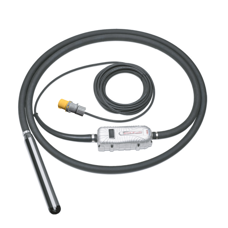 This Spyder Pro high frequency concrete poker has a 60mm wide and 403mm length Poker Head. This poker gives the operator plenty of accessibility on the concrete with a 15m cable and 7m hose.
