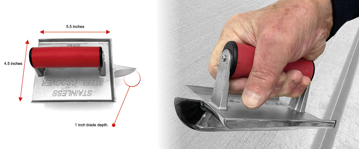 This concrete groover hand tool creates a 1 inch depth groove in the concrete and is ideal for slabs with a 4 inch slab depth. Made from stainless steel these are used for decorative effect and also to protect the slab from random cracking from shrinkage which can occur in the period just after placement and before hardening.