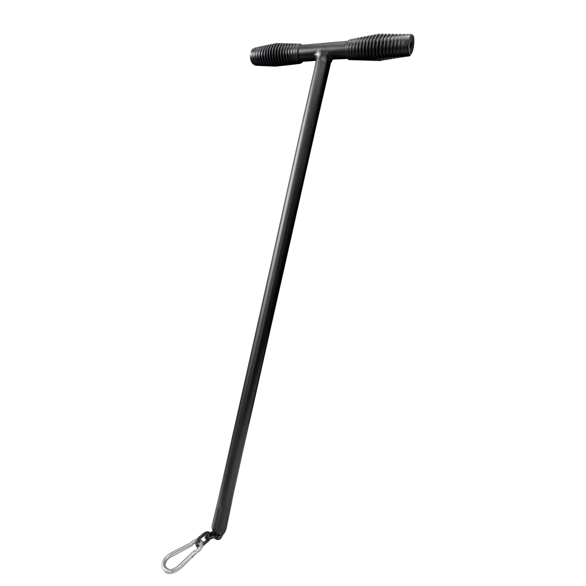 Made from Steel this handle clips onto a Pump Hose Disc via a Dog-Clip on a two link chain. This simple two handle T-Bar makes it easy to move a heavy concrete pump flex hose around the work area.