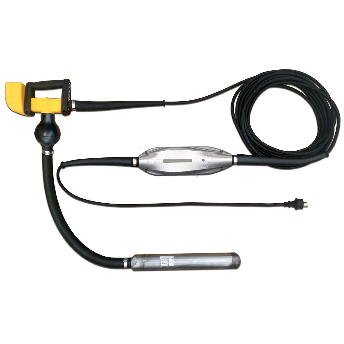 With the ULV high frequency concrete pokers the electronic converter is integrated within the transmission, eliminating the need for stand alone converters commonly used, there by offering greater versatility for many applications.