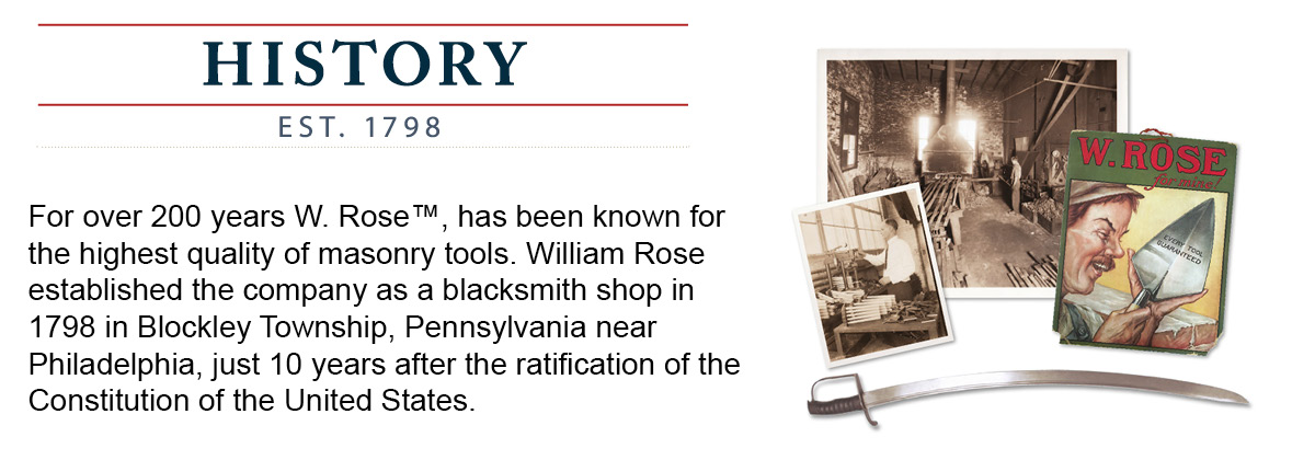 W. Rose™ was purchased in 1884 by O.B. Goodwin. He moved the firm to Elmwood Avenue in Sharon Hill, Pennsylvania, where W. Rose™ trowels continue to be made today. The company was in the Goodwin family for three generations before being sold to longtime employee Edward “Bucky” King and his sons in 1989. In 2001, Kraft Tool Co.® acquired this legendary company and remains dedicated to maintaining the superior craftsmanship of its tools.